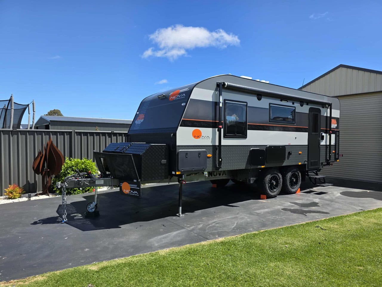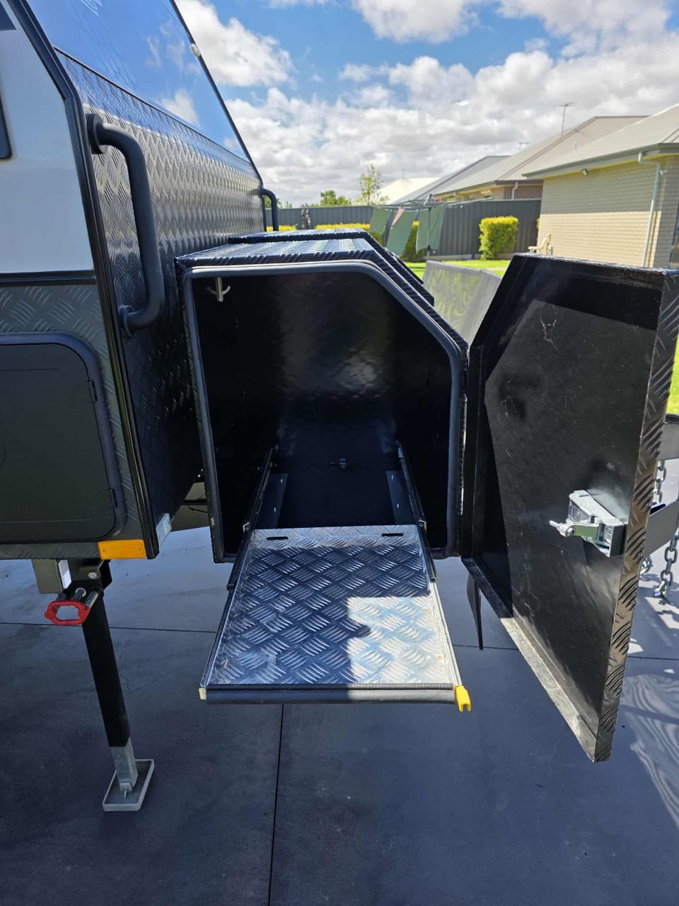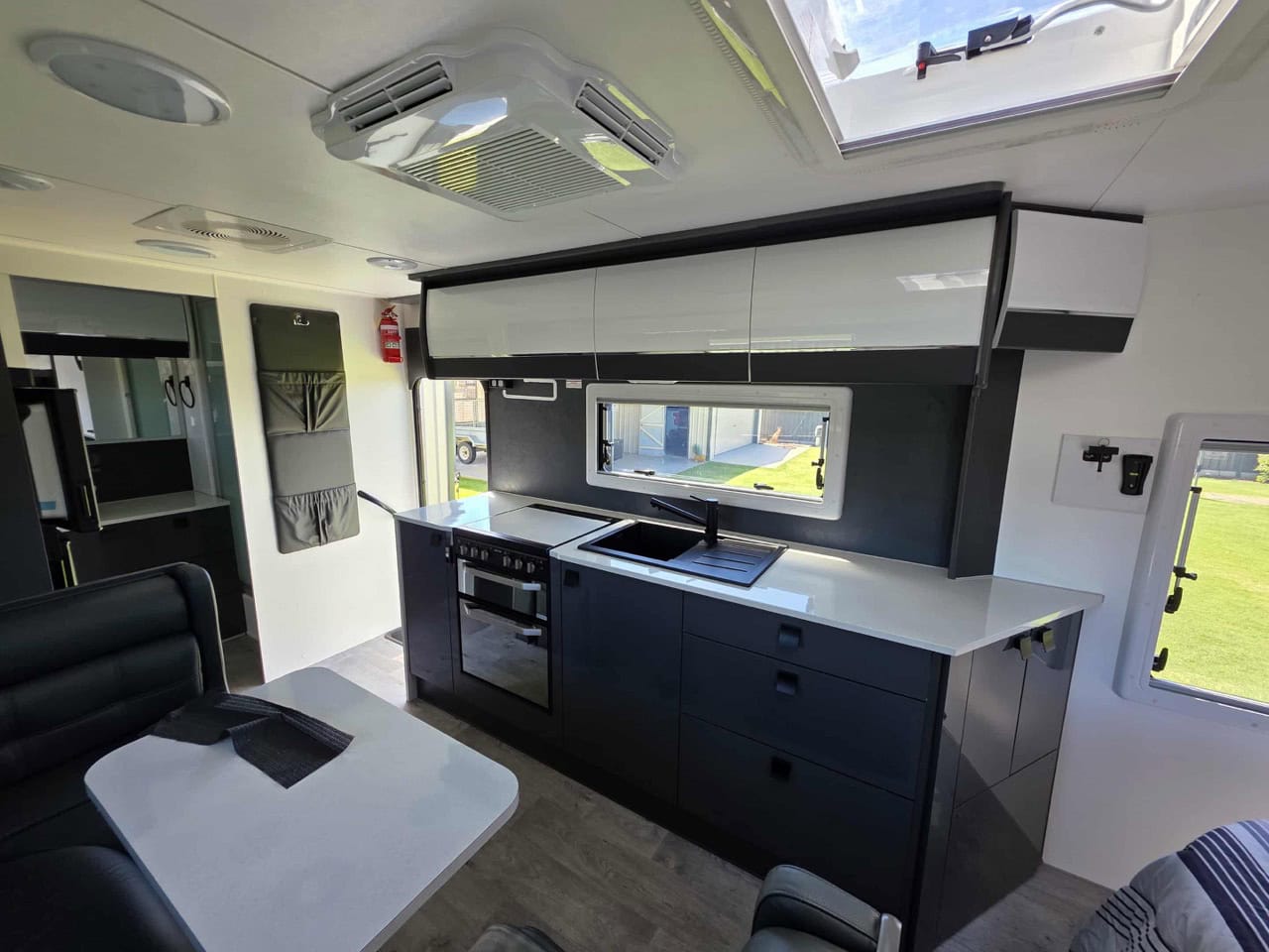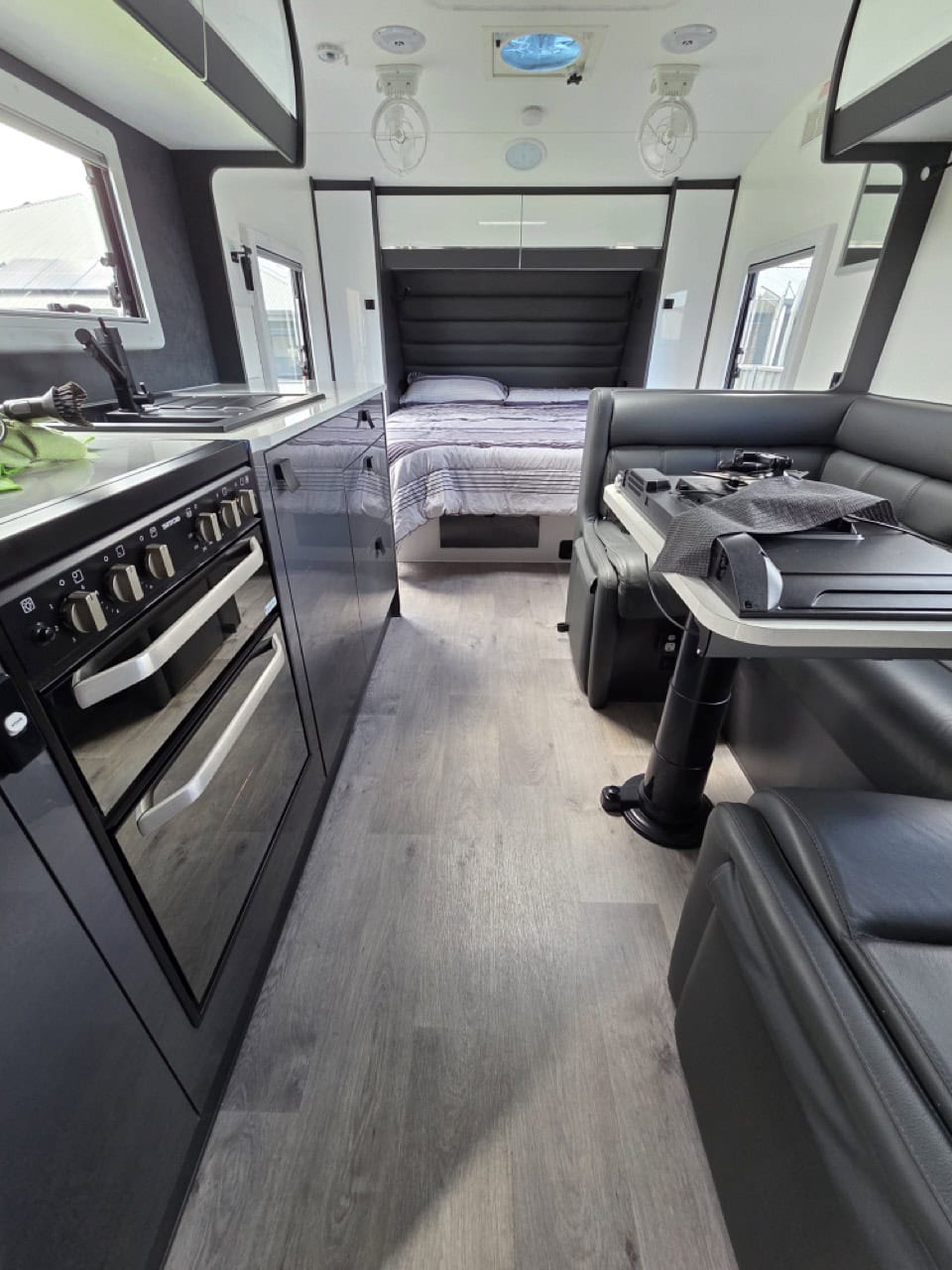 - Main Door, Hatches, Fridge Vents, Picnic Table, Awning Light: BLACK