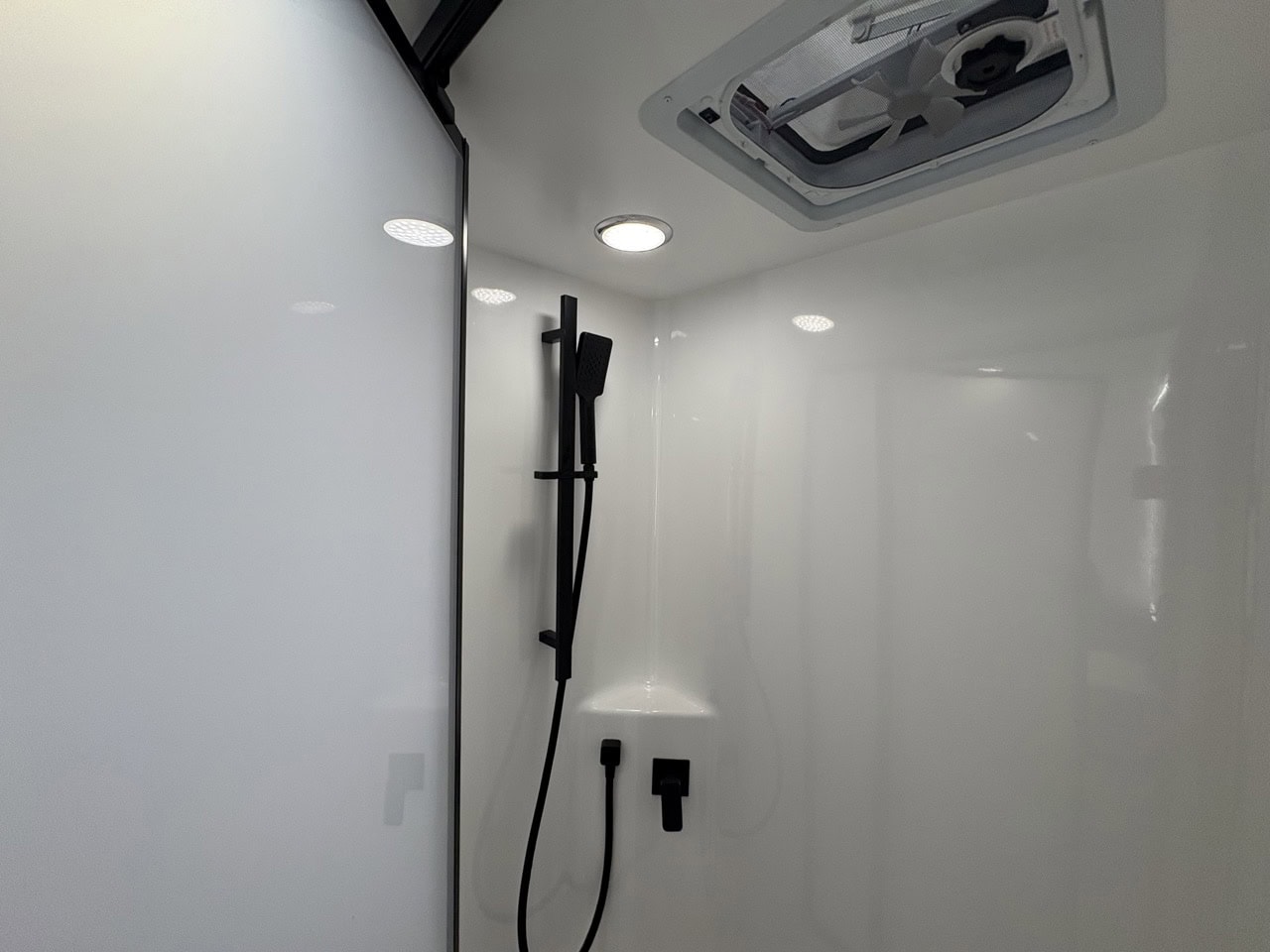 - Fully Enclosed, Full-Height, Fibreglass Shower.