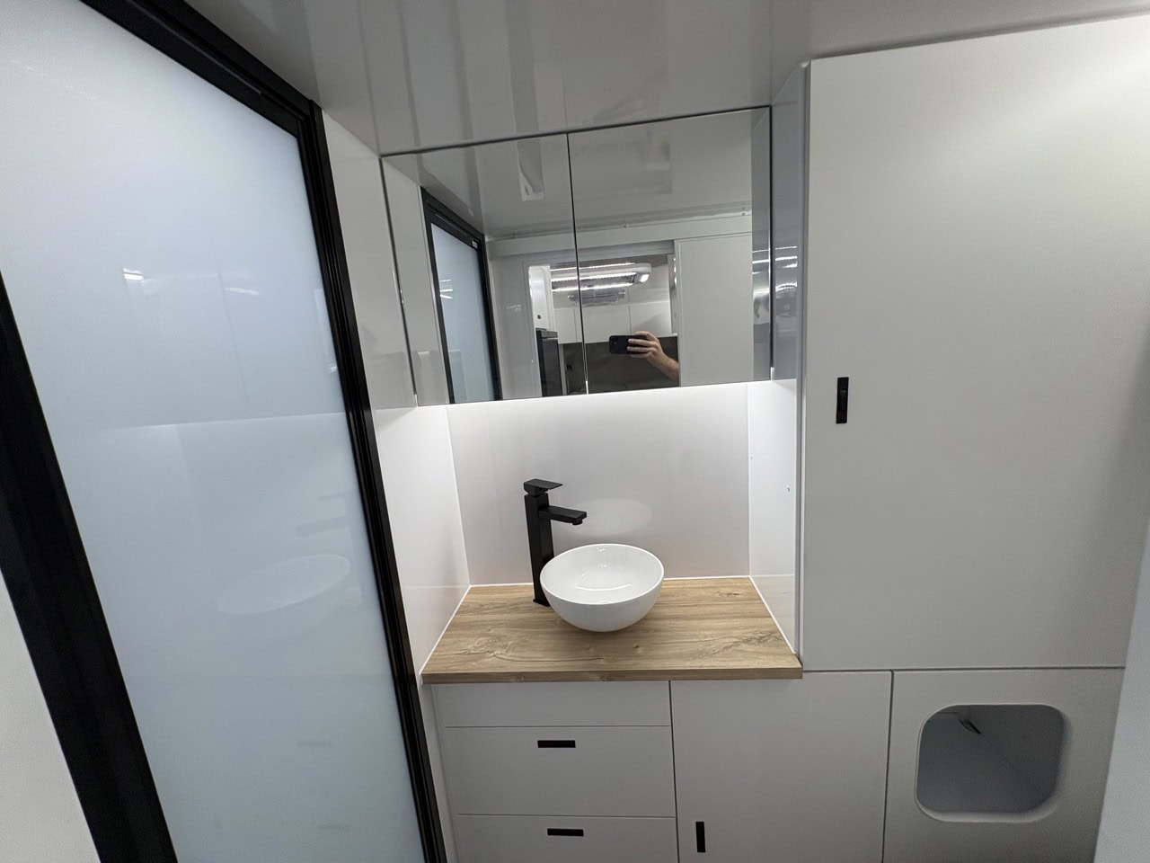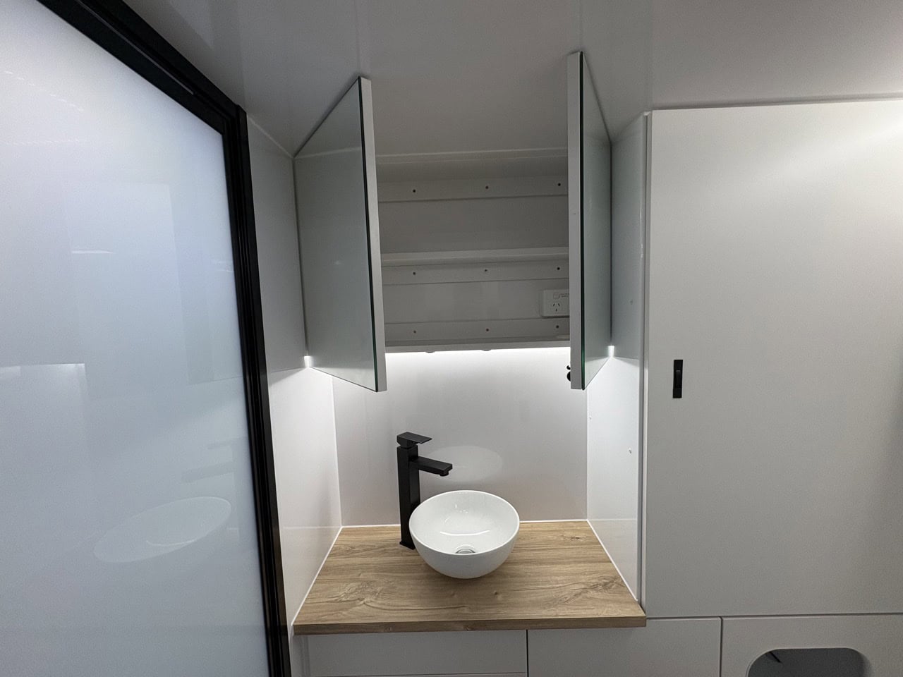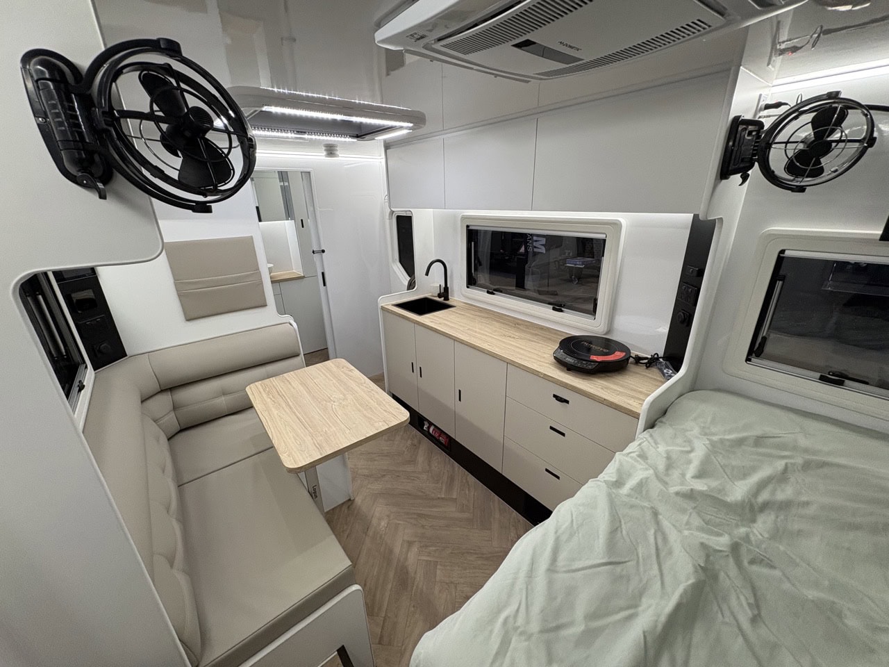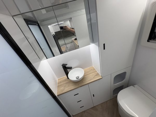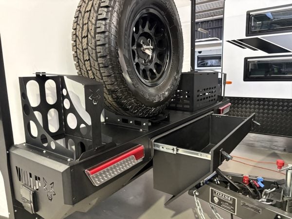 - Slide out kitchen with built-in storage drawers to suit portable induction