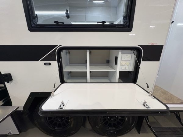 - LED lights in external storage compartments