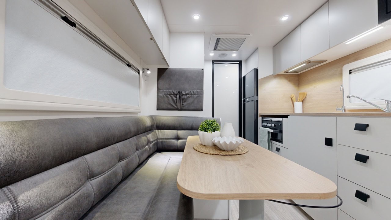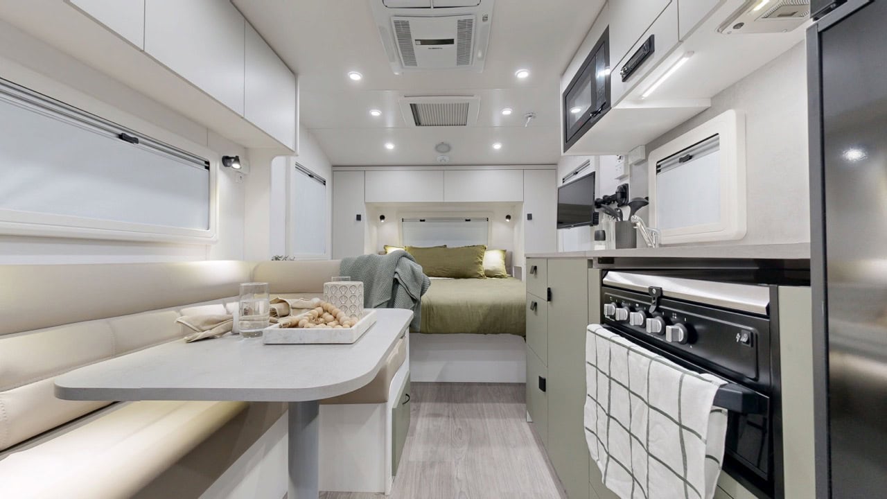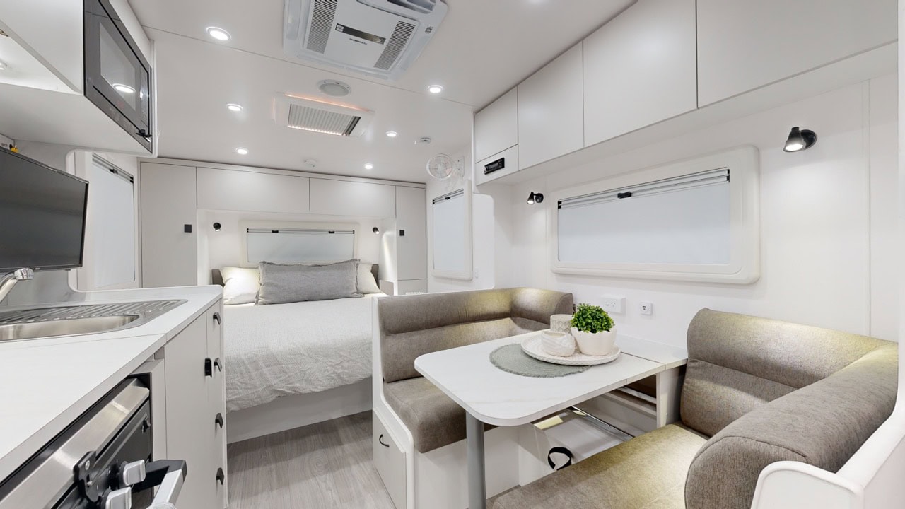 Since its release in 2024 the Core 185 has proven to be one of the most popular in the line up, offering a cafe seating arrangement in a single axle layout. This layout also includes a door side kitchen and full width tunnel.