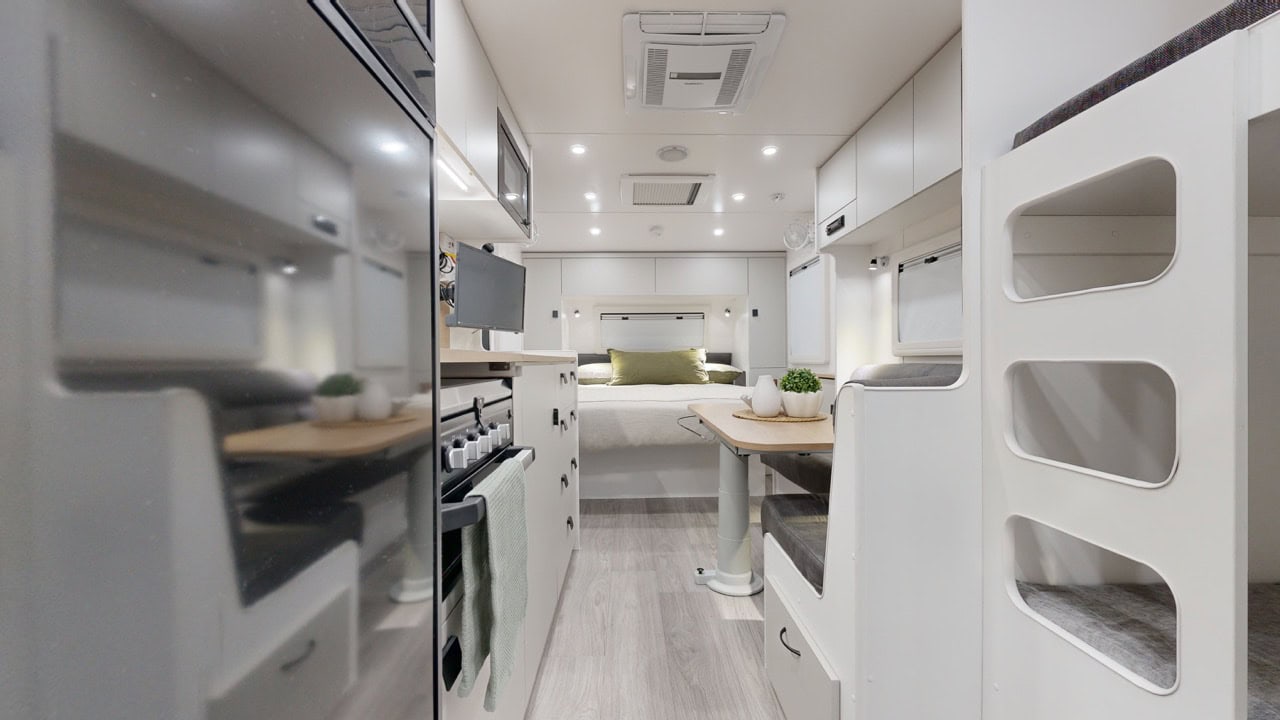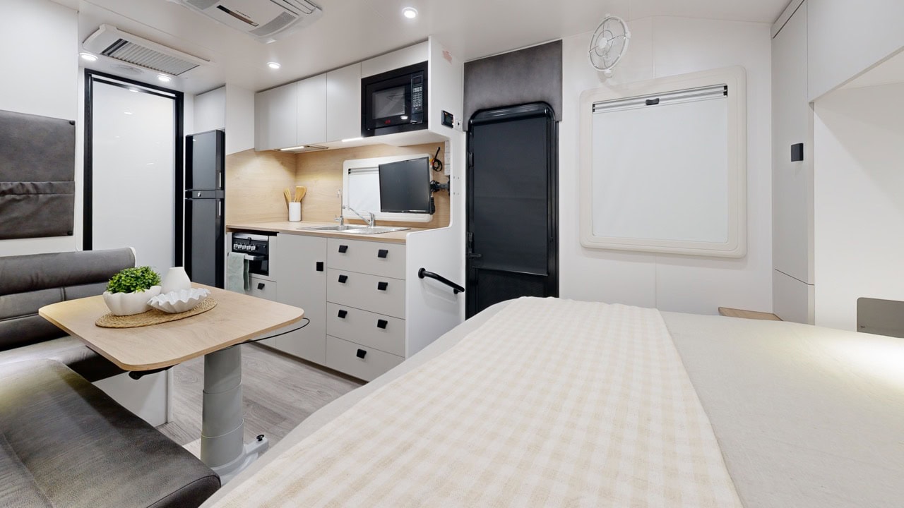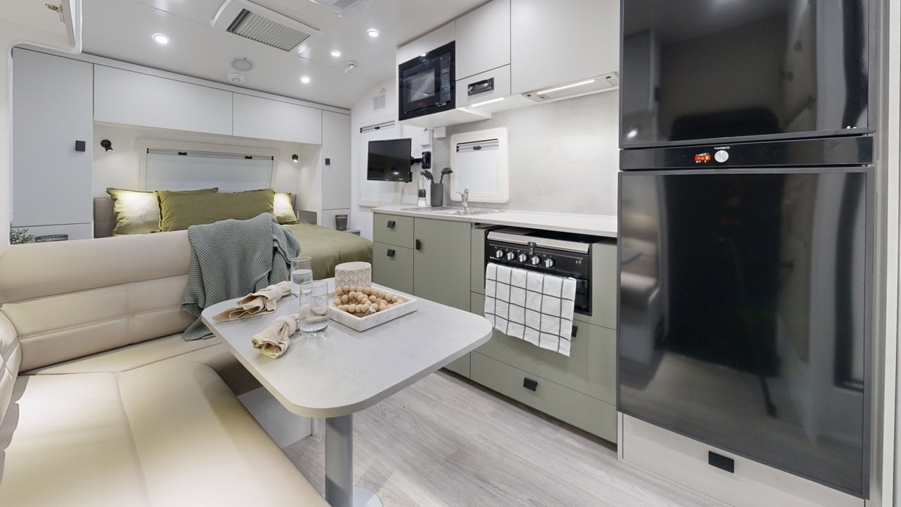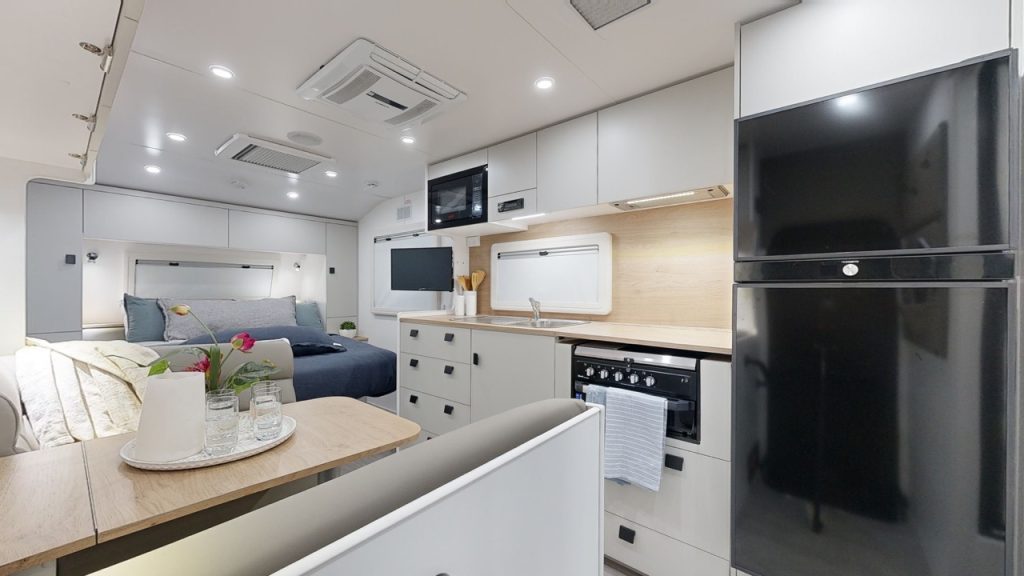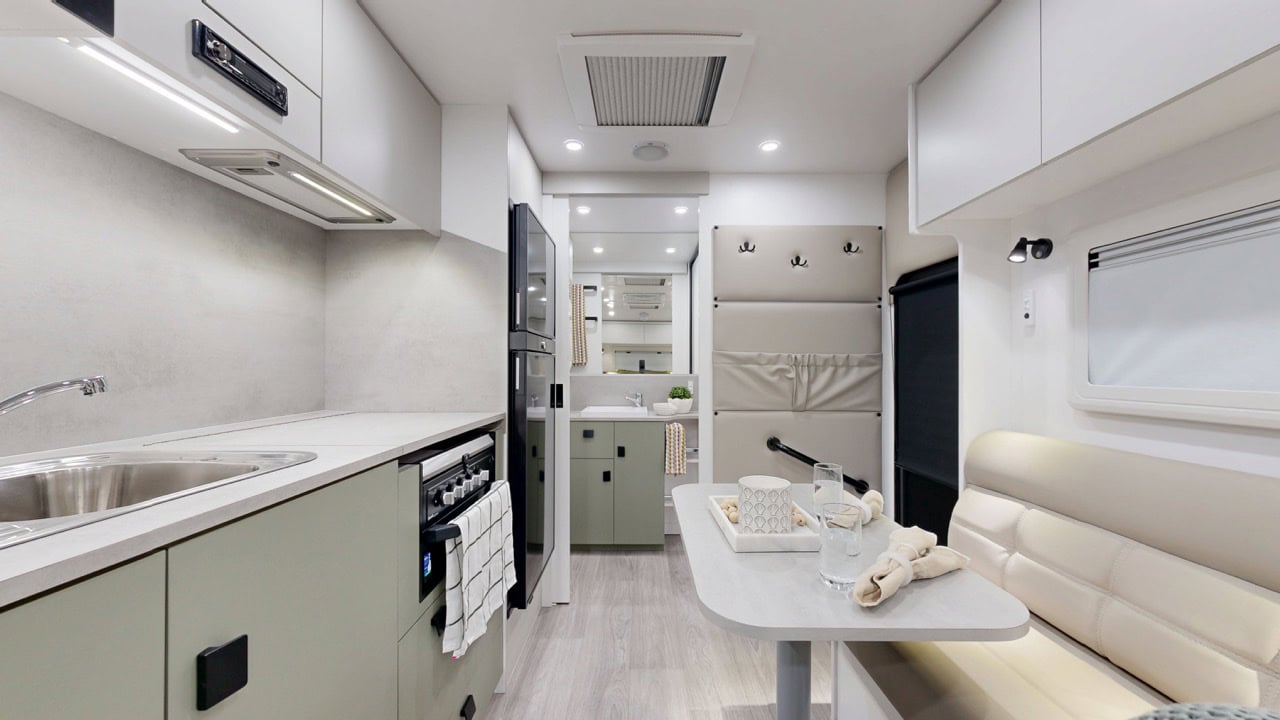 You can really customise the Core and make it your own with plenty of modern interior design options. The list of standard features in most models in this range include some great options like the 200 watt solar system and a washing machine. You’ve also got great features in the kitchen like a 2 door fridge and gas stove and mini grill.