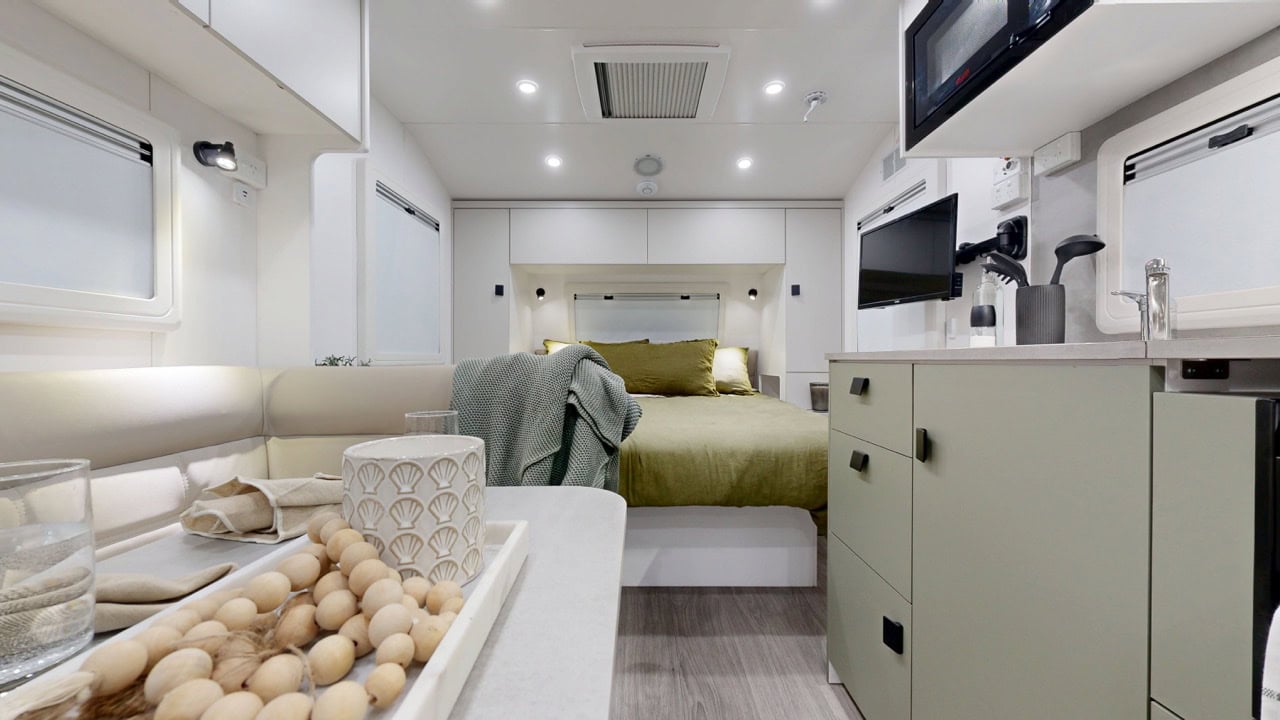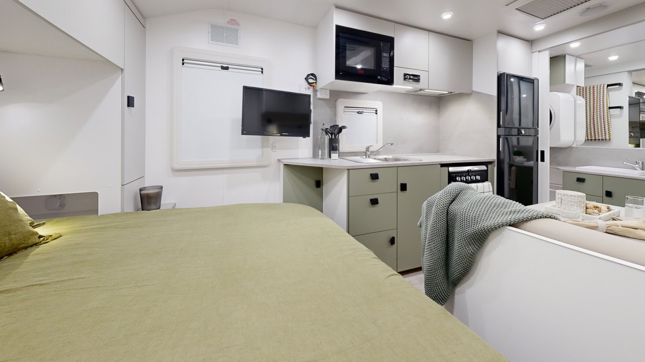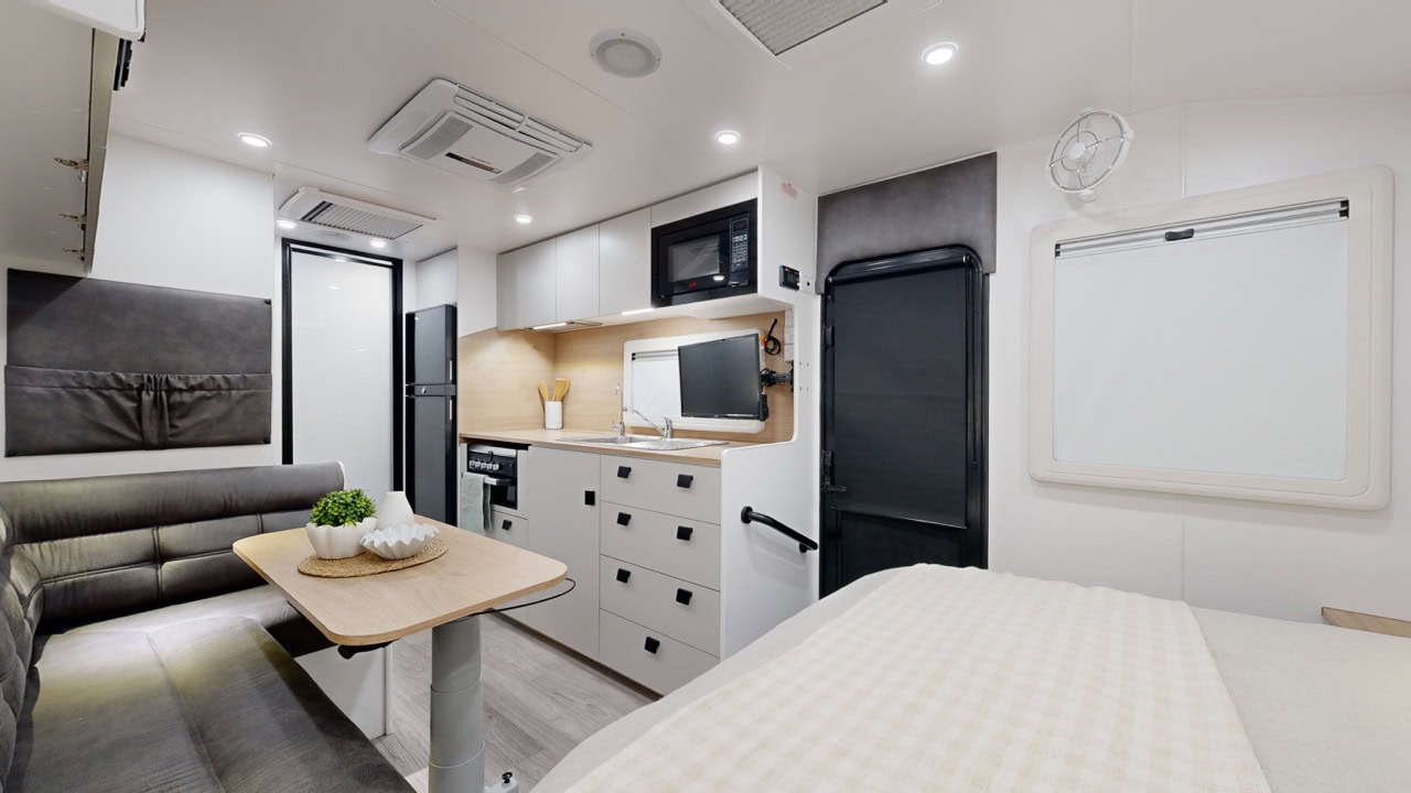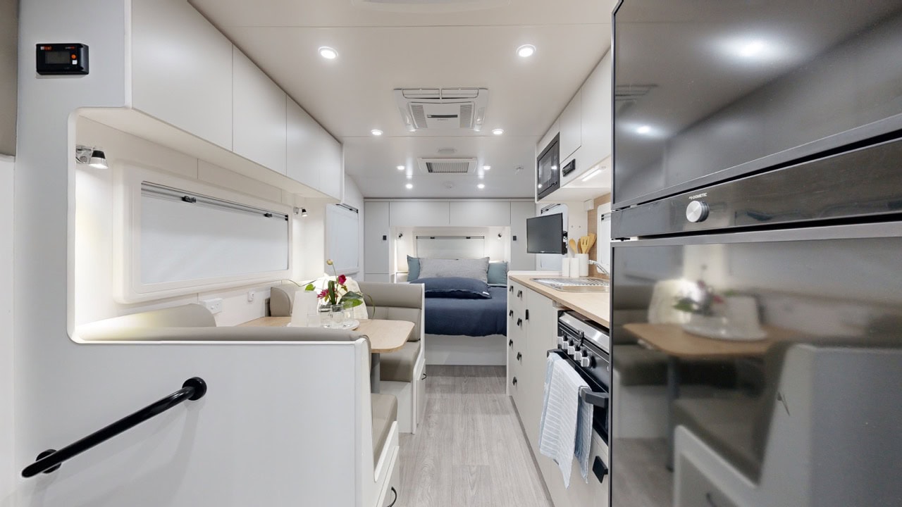You can really customise the Core and make it your own with plenty of modern interior design options. The list of standard features in most models in this range include some great options like the 200 watt solar system and a washing machine. You’ve also got great features in the kitchen like a 2 door fridge and gas stove and mini grill.