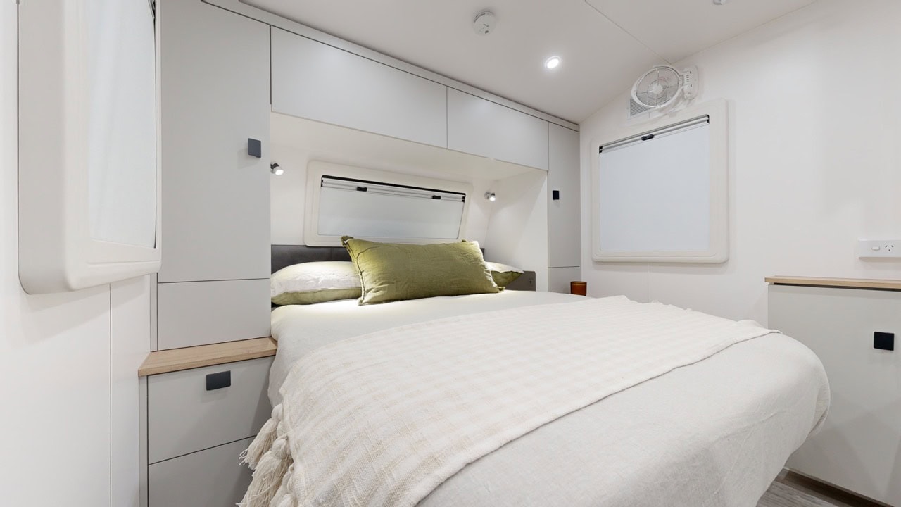This lightweight layout has the popular door side kitchen and plenty of space around the bed. At only 19’6″ it’s an absolute dream to tow. It comes with all the essentials such as a reverse cycle air conditioner and spacious 3 way fridge.